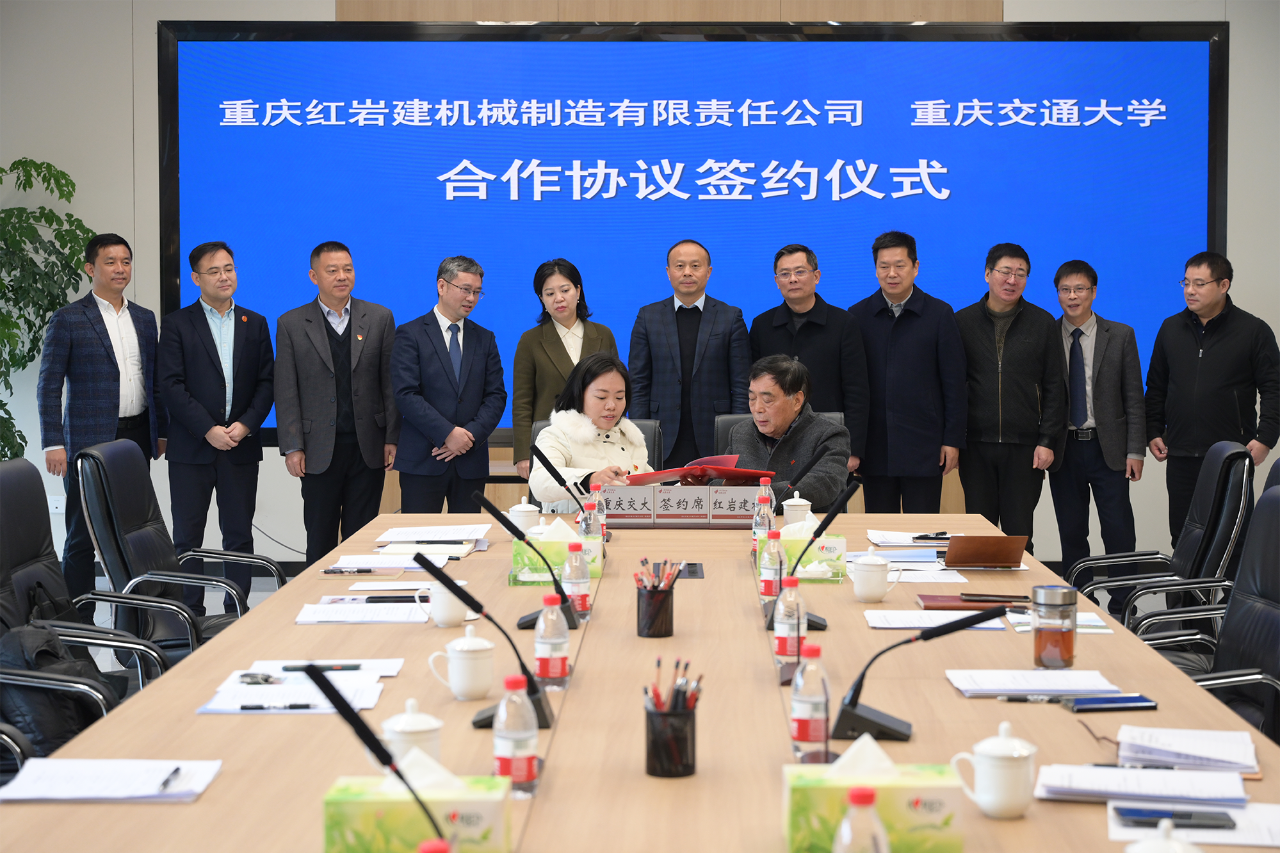 簽約儀式上,熊勁松和重慶交通大學(xué)產(chǎn)學(xué)研合作處處長馮瑞勝分別介紹了紅巖建機(jī)和重慶交通大學(xué)的相關(guān)情況。雙方表示,已在人才培養(yǎng)與交流、科技合作與資源共享、重大課題研究等方面已經(jīng)形成了良好的合作基礎(chǔ),取得了顯著成效,希望以此次協(xié)議簽訂為契機(jī),圍繞戰(zhàn)略決策咨詢、校企協(xié)同育人、科技聯(lián)合攻關(guān),聚焦大交通的強(qiáng)項(xiàng)領(lǐng)域與前沿領(lǐng)域,加快形成以人才培養(yǎng)交流為紐帶的產(chǎn)學(xué)研合作2.0模式,錨定合作重點(diǎn),科學(xué)分步推進(jìn),推動(dòng)提升戰(zhàn)略合作能級(jí)。