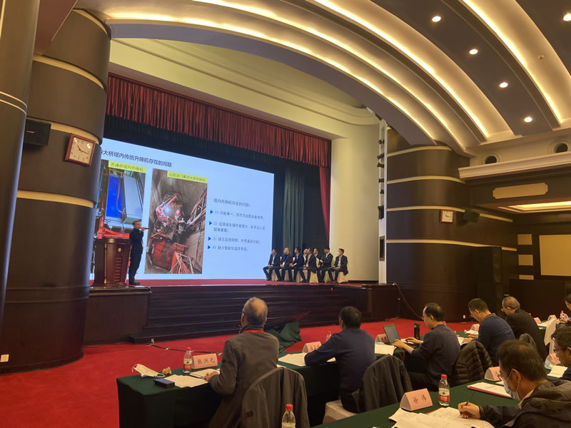 我司董事長在2021橋隧產(chǎn)業(yè)技術(shù)及產(chǎn)品科技創(chuàng)新成果發(fā)布會暨第六屆橋隧技術(shù)及產(chǎn)品創(chuàng)新大賽發(fā)表演講,主題為“特大橋橋塔塔內(nèi)智能化檢養(yǎng)升降機(jī)”。