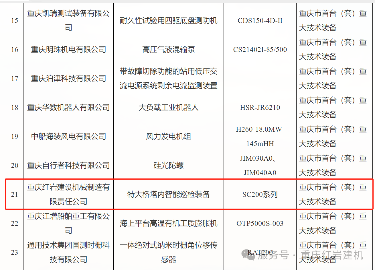 按照《重慶市首臺(套)重大技術裝備認定管理辦法》(渝經信規(guī)范〔2022〕5號)規(guī)定,重慶市經濟和信息化委員會已按程序對第三批申報的重慶市首臺(套)重大技術裝備產品進行了專家評審,共計64個產品通過評審并排序。我司《特大橋塔內智能巡檢裝備》排名21,成功入選第三批重慶市首臺(套)重大技術裝備產品名錄。